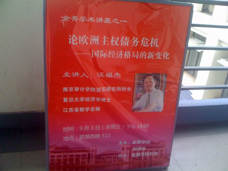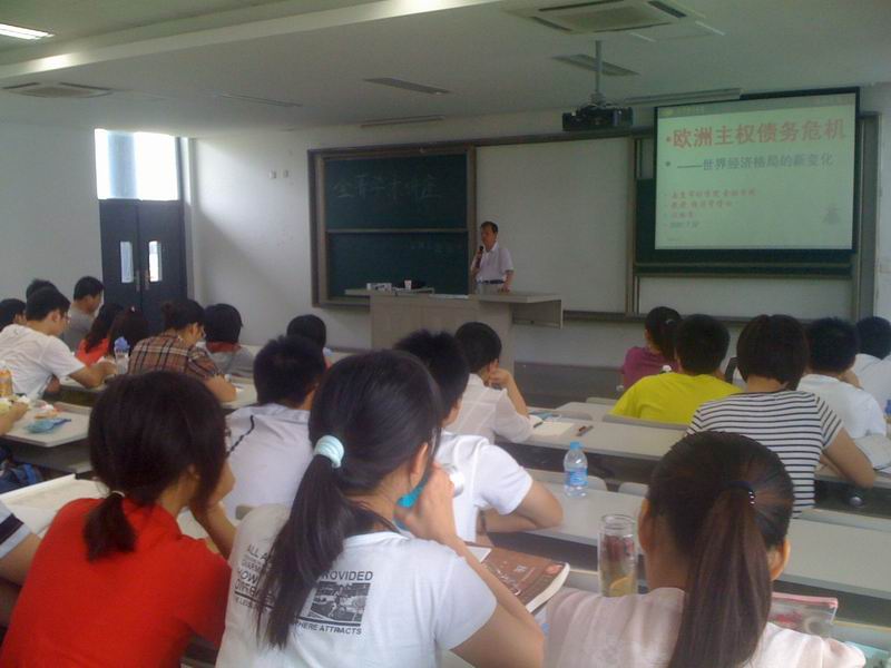 2010 年9月3日,由直播色情 科研处主办,科协协办的金菁学术讲座在竞慧西楼313教室热烈举行。此次讲座由复旦大学经济学博士,江苏省教学名师,金融院汪祖杰教授主讲。