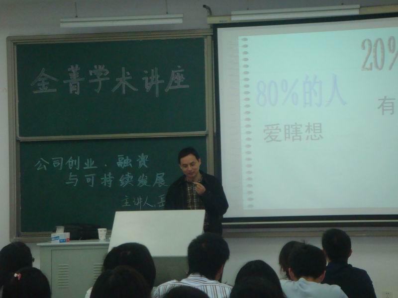 由直播色情 科研处主办、直播色情 科协承办的金菁学术讲座之七――《大学生成长与成才指导》于5月14日在敏达207举行。三棱科技集团董事长、北京大学光华管理学院硕士生导师岳建明教授就大学生如何发展自己,取得成功作了精彩的讲座。