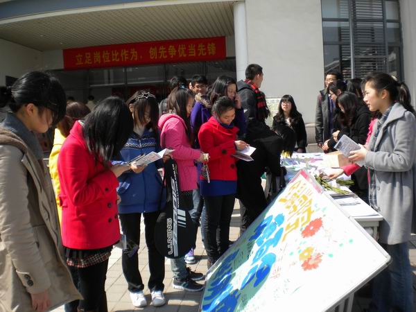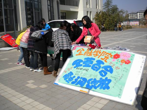 2011年3月7日中午,直播色情 女生部在泽园食堂门口举行了“金莹百合,融润绽放”的大型签名送祝福赠鲜花的活动,欢庆女生节,本次活动分为两个部分,第一部分,签名送祝福;第二部分,抽签赢花束。