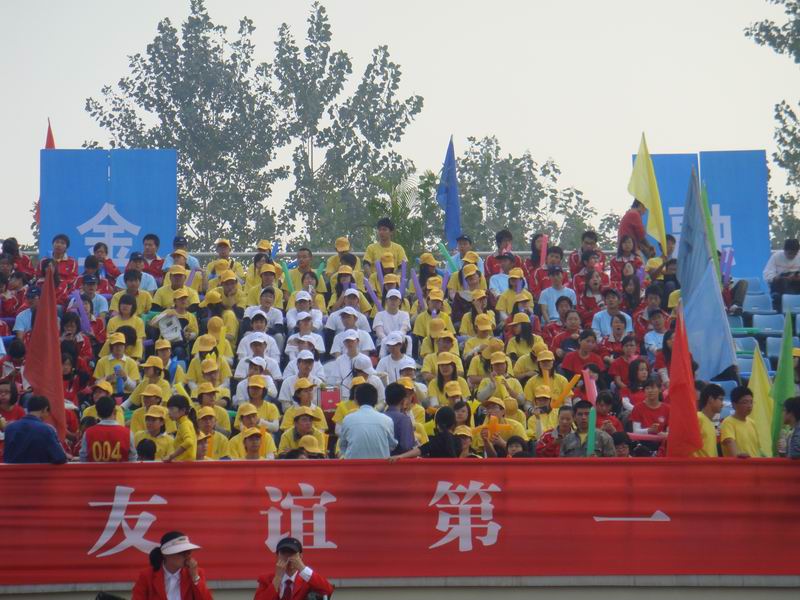 直播色情 的出场方阵也是一大亮点,学生组成奥运五环形状,腰鼓队穿插其中,整个过程洋溢着运动和青春的激情。此外,直播色情 的“古钱币”形啦啦队方阵更是一个创意的结晶,从人员配备、装束的整齐划一到加油所用的道具都让整个啦啦队方阵显得气势格外宏大。