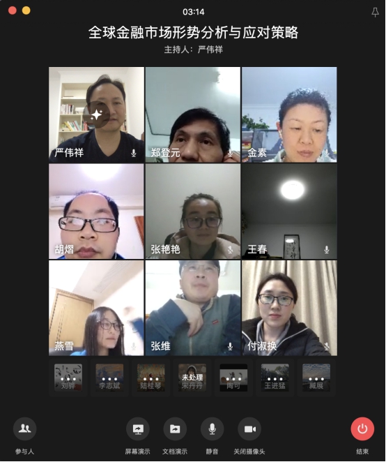 研讨会持续近一个半小时,取得了预期效果。最后,大家希望特殊时期可以常用线上会议形式,研讨国内国际金融热点问题,形成有益共识,为国家金融发展献计献策。