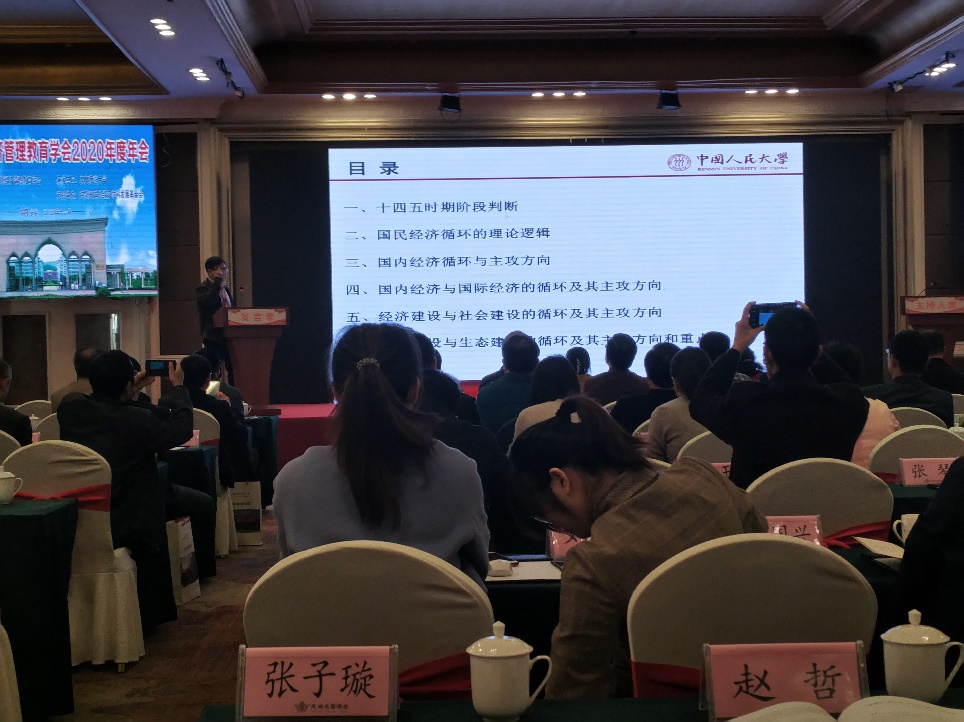 11月7日上午,来自中国人民大学等全国高校、科研院所、党校120多位专家学者共聚一堂,在安庆师范大学经济与管理学院院长杨国才教授的主持下,本次会议拉开帷幕。会议收到60多篇论文。中国宏观经济管理教育学会会长、中国人民大学教授刘瑞就畅通国民经济良性循环的主攻方向及重点发表主旨演讲,重点强调了国内经济与国际经济、经济建设与社会建设的循环及其主攻方向,并阐明了“十四五”时期阶段判断和未来关注的十四个重大关系。专家学者踊跃发言,围绕“双循环”的主题探讨了国内国际双循环相互促进新发展格局、制造业构建双循环的思考、双循环下我国城镇化的发展思路以及政治风险与企业出口的异质性研究等。