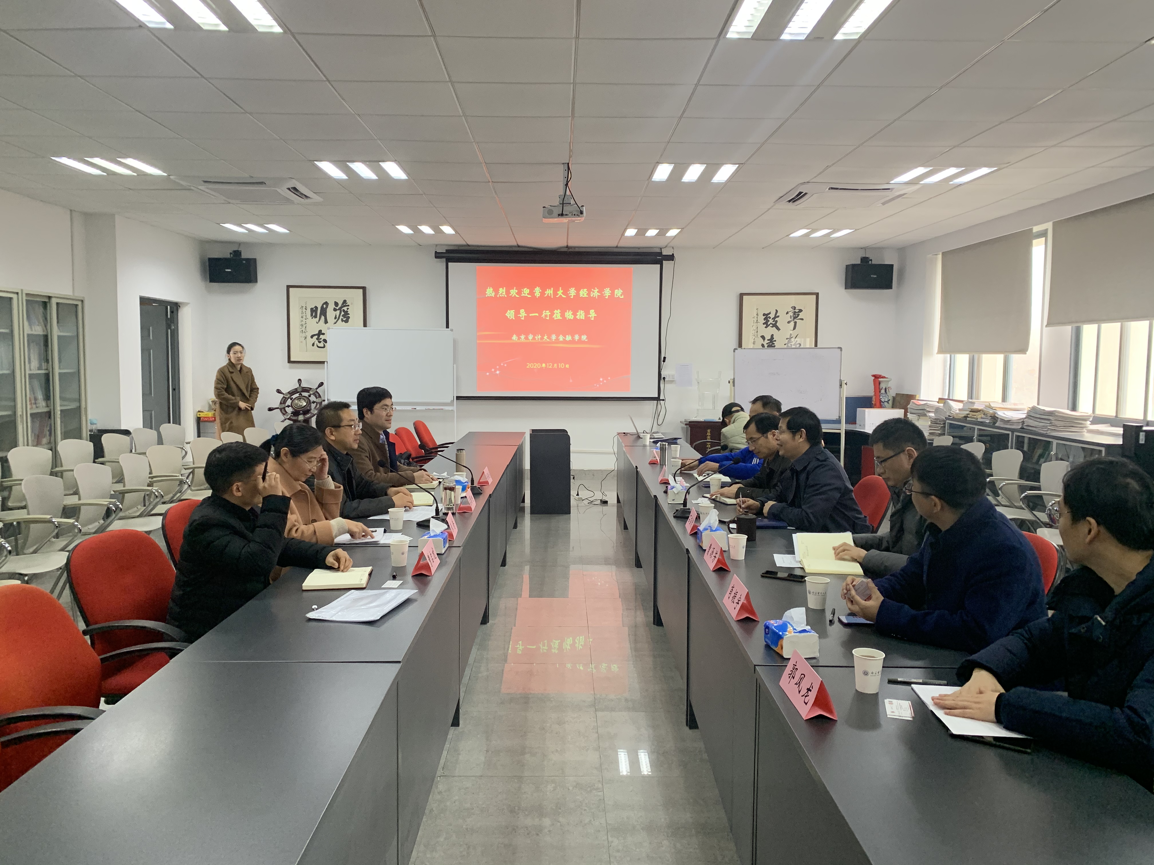 12月10日下午,常州大学经济学院院长姜国刚、副院长张普、副院长任保全、院长助理曹启龙一行来访我校直播色情 。直播色情 院长石岿然、副院长谷政、金融系主任曹源芳、投资系主任严伟祥、保险系主任罗琰、信用管理系主任肖振宇、金融工程系主任郭风龙出席交流座谈会。