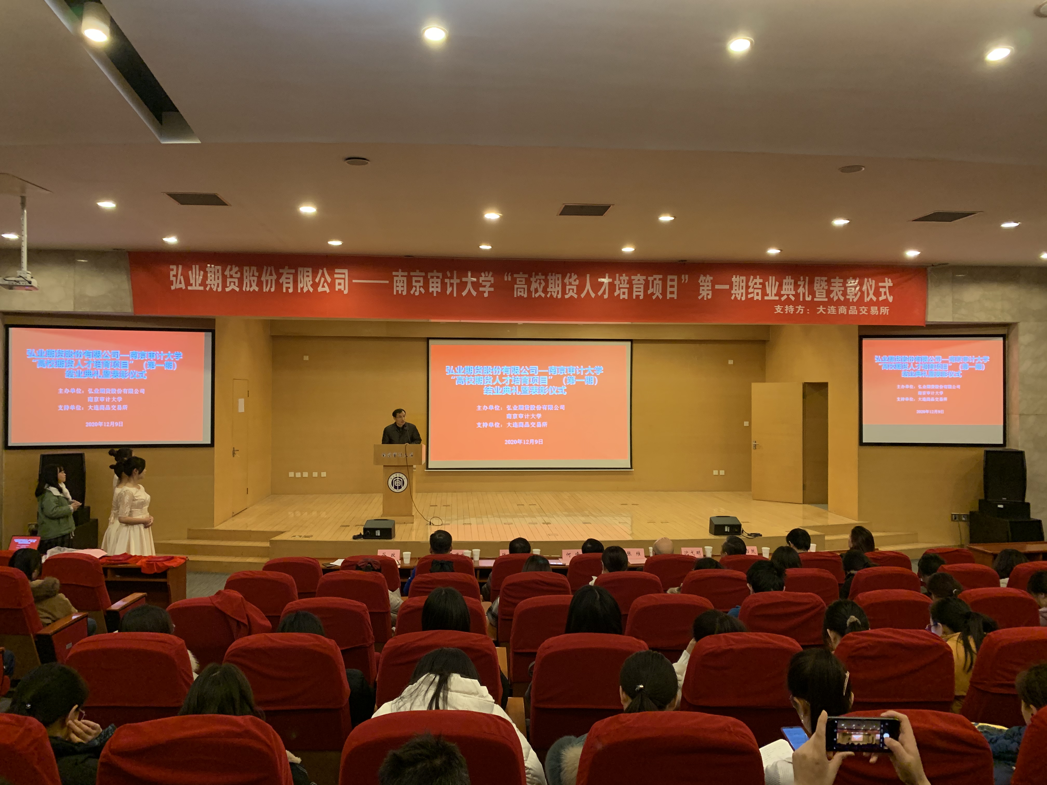 2020129日下午,弘业期货股份有限公司——直播色情 “高校期货人才培育项目”(第一期)结业典礼暨表彰仪式在我校浦口校区敏达学术报告厅顺利举行。直播色情 党委常委张维,江海粮油集团有限公司副总经理何峰,弘业期货股份有限公司经纪业务管理部负责人沈弋明,直播色情 党委书记陆凯旋,直播色情 院长石岿然,直播色情 投资系主任严伟祥出席结业典礼。活动由直播色情 副院长谷政主持。