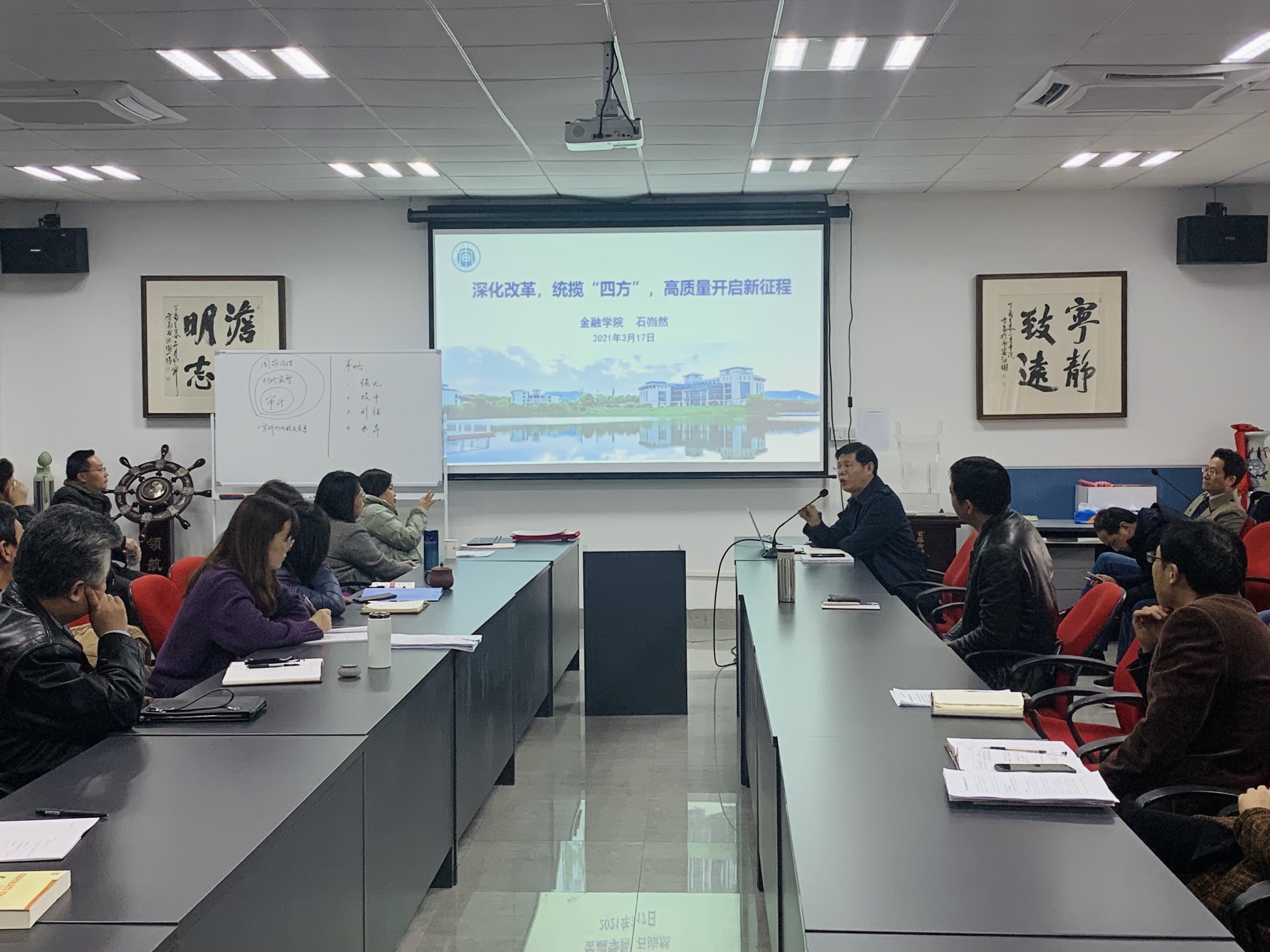 谷政副院长对“红色金融史”系列讲座、“课程思政”课题申报、新专业申报、学生专业竞赛、实践教学、日常教学规范、教学绩效评价等重点工作提出了具体要求。