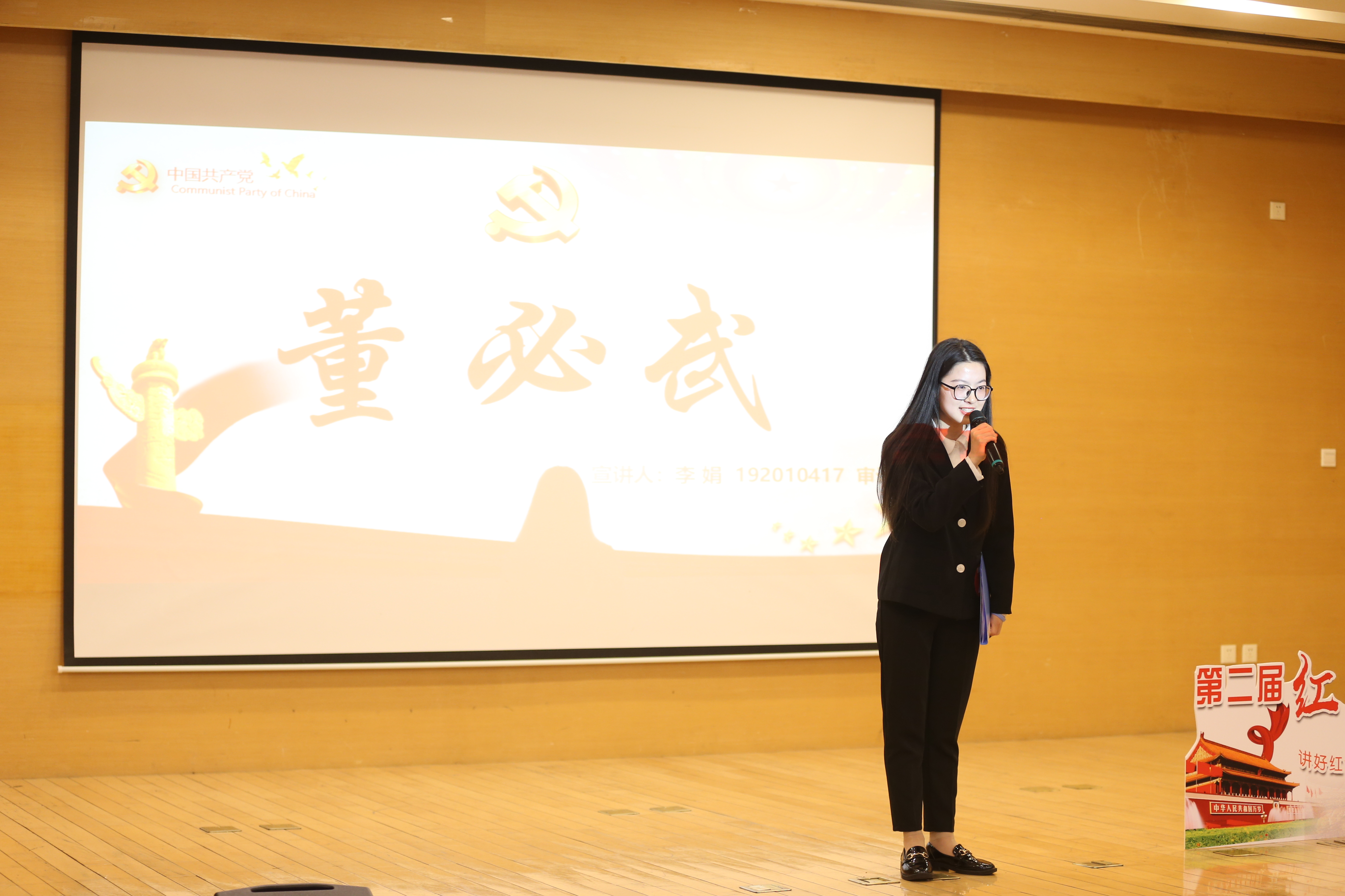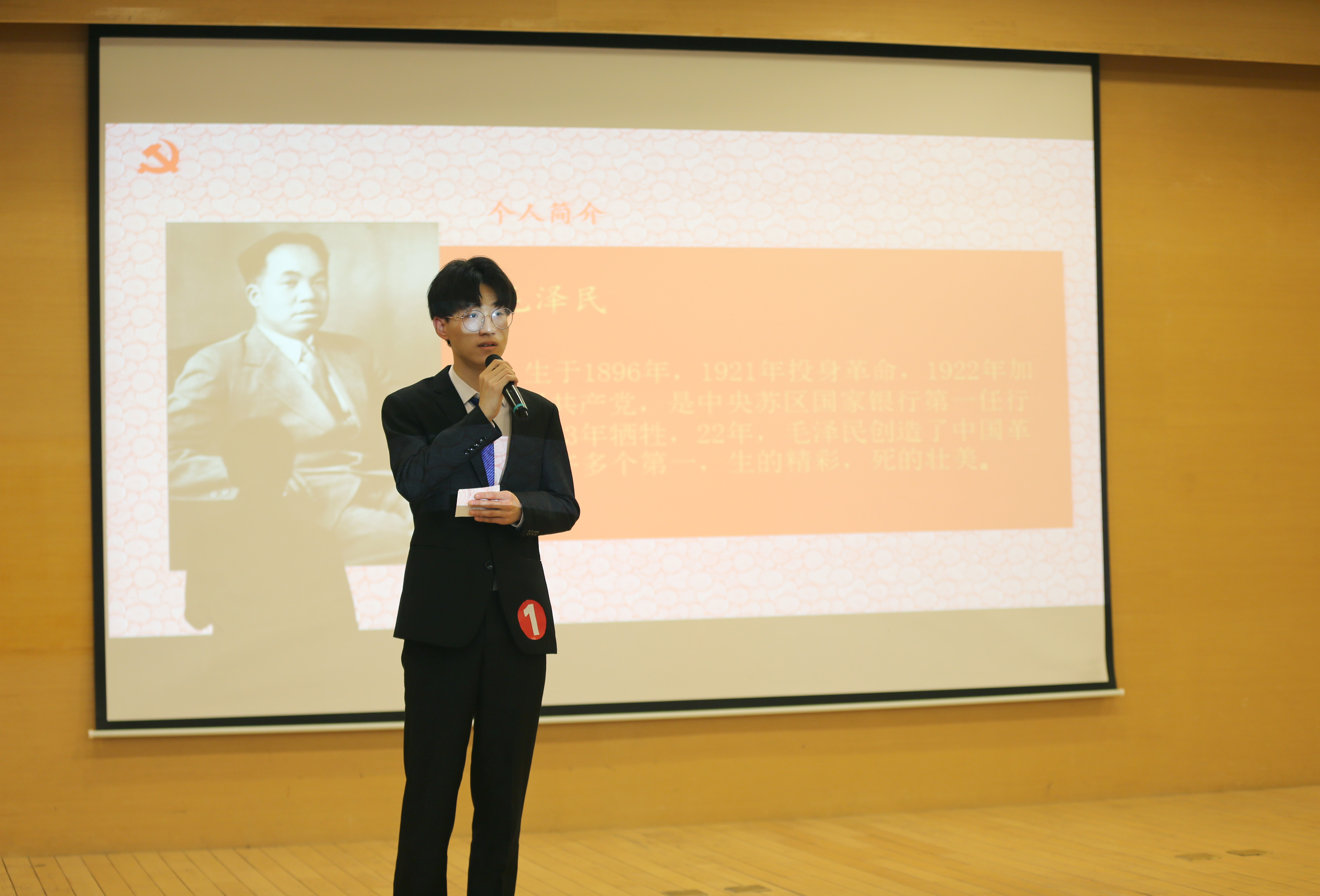 比赛中,各位选手怀着对革命前辈们无比崇敬的心情,饱含激情地讲述了一个个为国家富强、人民幸福而艰苦奋斗、甘于奉献、勇于牺牲、可歌可泣的金融英雄故事。井天祥同学分享了“红色大管家”毛泽民短暂却精彩的一生,尤其是毛泽民作为国家银行行长,在革命时期是如何让新生的国家银行正常运转,让百废待兴的经济得到发展的;孙悦同学讲述了一代侨领庄世平老先生在抗日时期,在新中国成立后为中国、为香港经济发展做出巨大贡献的传奇人生;杜春婷同学以打动人心的演讲技巧和得体的形象风度讲述了高捷成舍己为国的高尚事迹,她铿锵有力地念出那封“迟到六年的家书”让在场的观众无不动容、潸然泪下;万自立同学了讲述了井冈山红军造币厂的建立与“工”字银元铸造的故事,回顾了当时国内外的货币历史,呼吁大家传承井冈山精神,让井冈山精神在新时代折射出新的光芒;刘铭同学分享了红色审计第一人阮啸仙的英雄故事,讲述了他成长为中华苏维埃共和国第一位中央审计委员会主任,用专业知识为苏区经济建设贡献力量的事迹;蒋政延同学讲述了为抗美援朝胜利和新中国成立之初经济发展做出巨大贡献的霍英东先生的幕后英雄事迹;李娟同学分享了在解放战争的炮火中,按中共中央指示,担当重任创建中国人民银行,并亲自为第一套人民币书写货币名的董必武事迹;曹诗文同学讲述了“扁担上的国家银行”时期重要人物曹根全;高云硕同学讲述了以一己之力改变边区经济局势,让边境金融繁荣稳定的朱理治先生的事迹……选手们通过慷慨激昂的演说,将一个个红色金融故事娓娓道来,带领大家学习金融史,重温激情燃烧的红色岁月。在场的评委和观众们无不深深感动。
