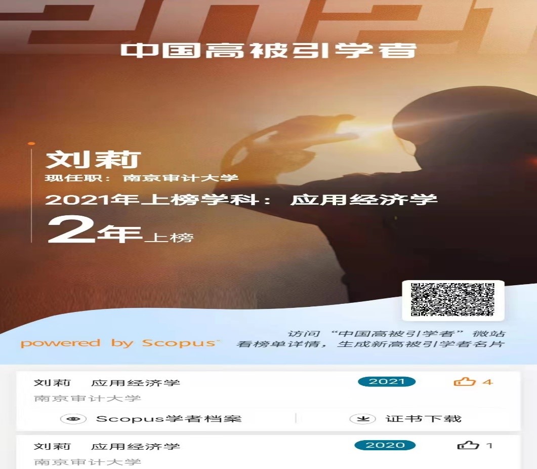 2022年4月14日,全球性信息分析公司爱思唯尔(Elsevier)重磅发布2021“中国高被引学者”(Highly Cited Chinese Researchers)榜单,直播色情 刘莉副教授作为应用经济学学科的高被引学者入选该榜单。