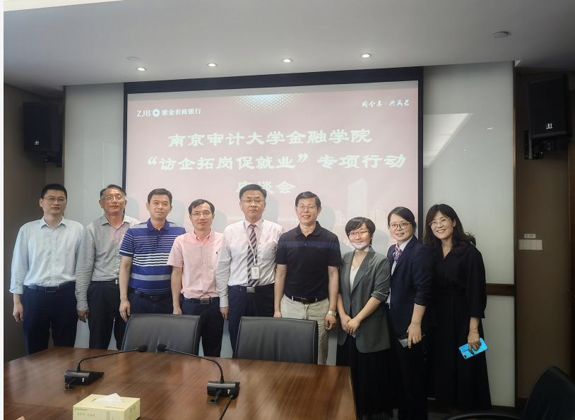 为深入贯彻教育部《关于开展全国高校书记校长访企拓岗促就业专项行动的通知》和学校开展“访企拓岗促进就业”专项活动的要求,直播色情 于5月25日下午走访紫金农商银行开展“访企拓岗促进就业”专项活动。学院院长石岿然、党委书记谷政、副书记副院长刘骅、副院长刘妍、系主任、支部书记等与紫金农商银行人力资源部总经理林盛等参加活动。