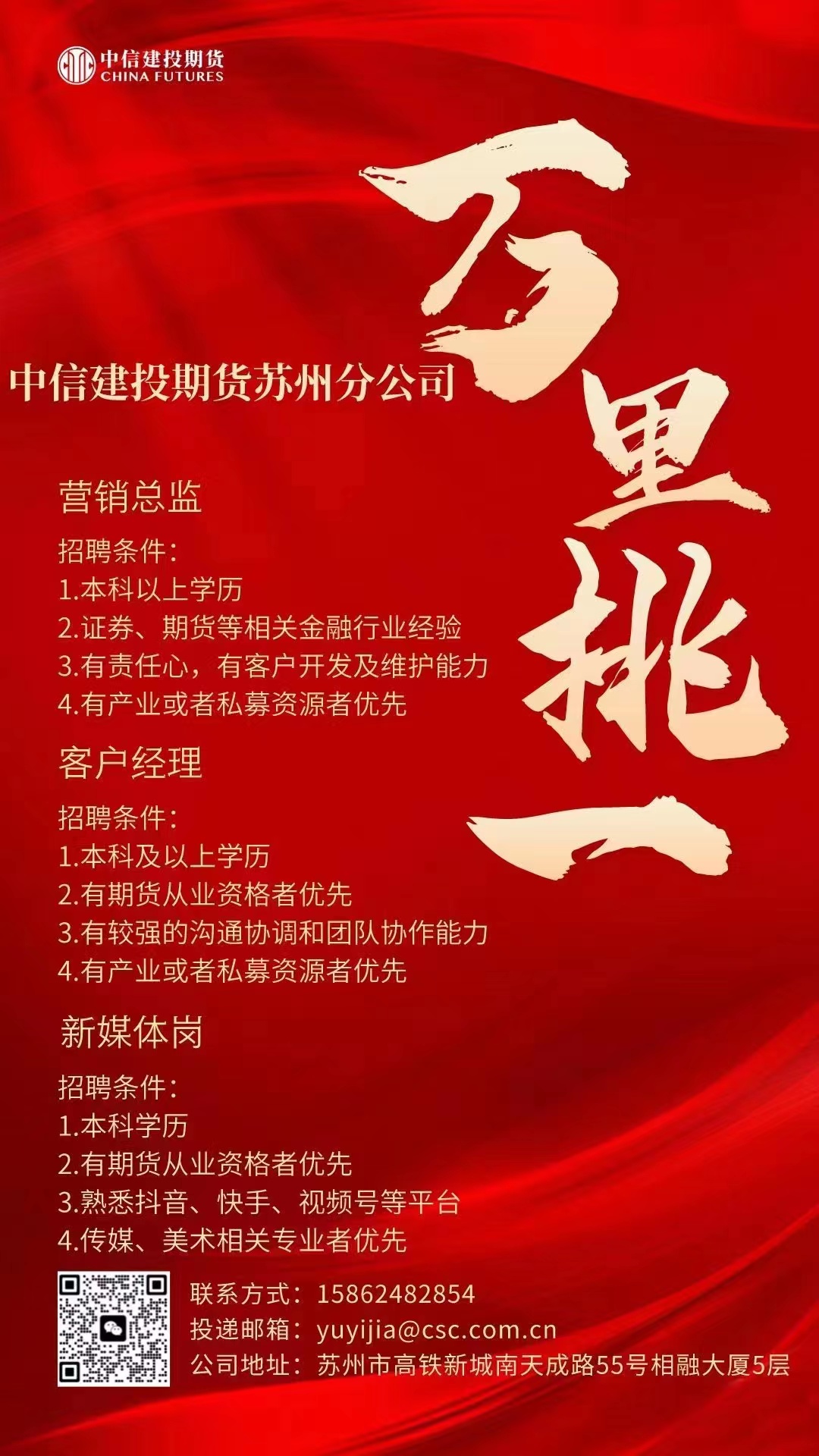 中信建投期货苏州分公司招聘公告