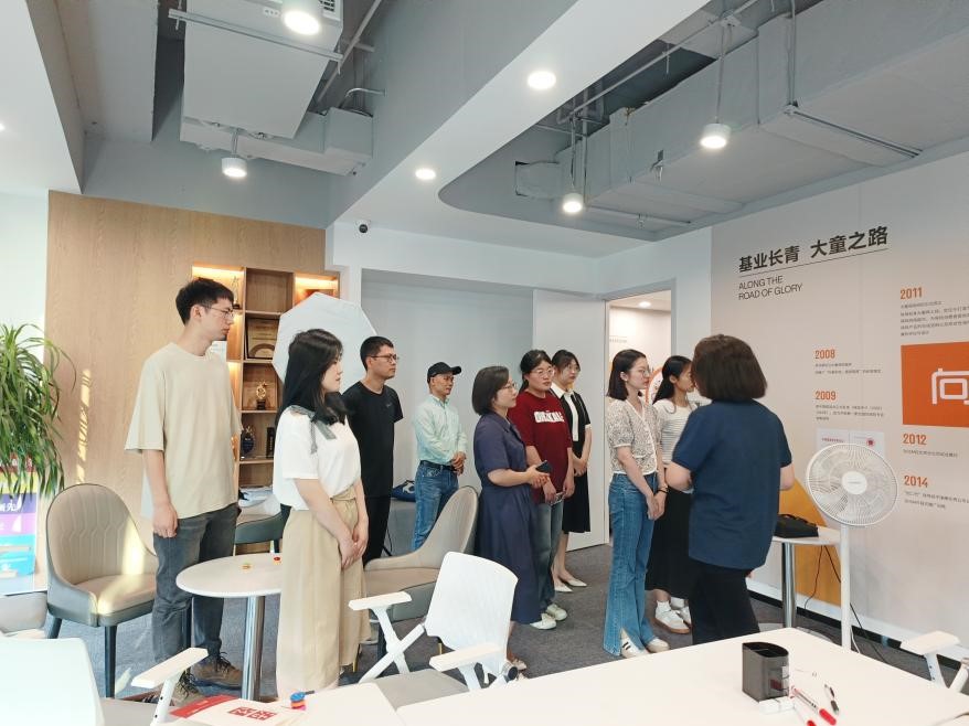 综合部蔡露璐经理展示了大童保险公司的运营机制、组织架构、直播色情及经营模式,带大家沉浸式地体验了大童保险服务公司的工作环境,会议中心、各部门科室及优秀员工培训中心。同学们不仅感受到了来自业内优秀公司的专业与人本性,也了解到了保险专业知识在保险实践中的专业技术应用场景,收获了课堂以外经验与知识。