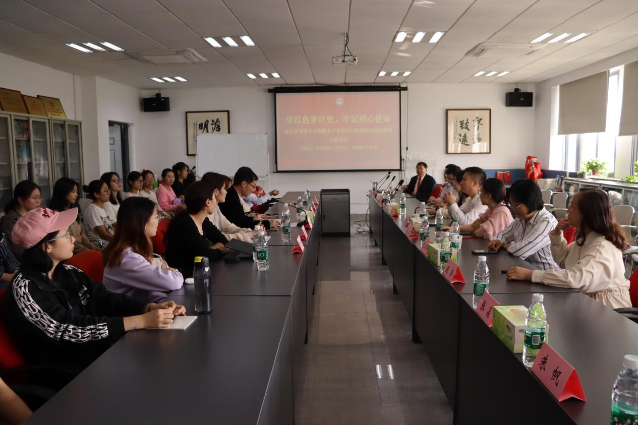 参观完王荷波纪念馆,全体联盟成员单位代表前往直播色情 敏达楼学习学红色审计史,牢记初心使命专题党课。本次专题党课由直播色情 资深二级教授江世银主讲,他从中国红色审计回顾、准确理解把握新时代的特定内涵、审计监督的几个方面以及新时代审计的几点思考这四个方面介绍了红色审计与审计精神的内涵与意义,带领联盟成员单位代表深刻体会红色审计的发展脉络。直播色情 师生、党建联盟成员单位代表共50余人参加。