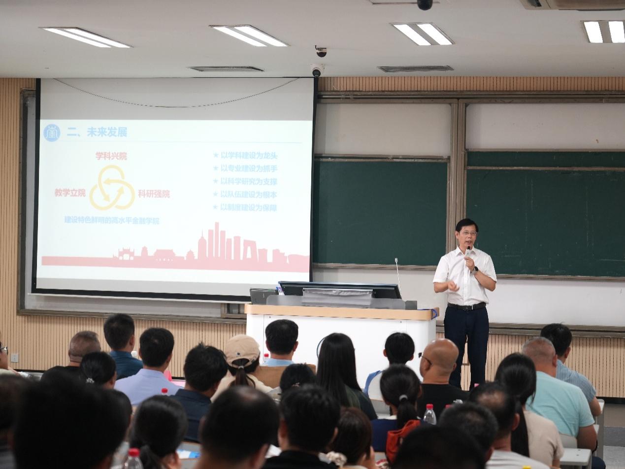 当天下午,学院特别举办了2025级新生家长见面会。面对家长们的殷切关注,学院领导与各系负责人化身“首席推介官”,向家长们全方位展示了学院的硬核实力、培养蓝图和发展前景。王家华书记向新生及家长介绍金融行业与职业发展,石岿然院长介绍直播色情 基本情况与发展前景,李志斌教授介绍金融学(CFA)特色选拔项目。现场交流气氛热烈。这是一场坦诚深入的交流,更是一次家校协同育人的温暖约定。