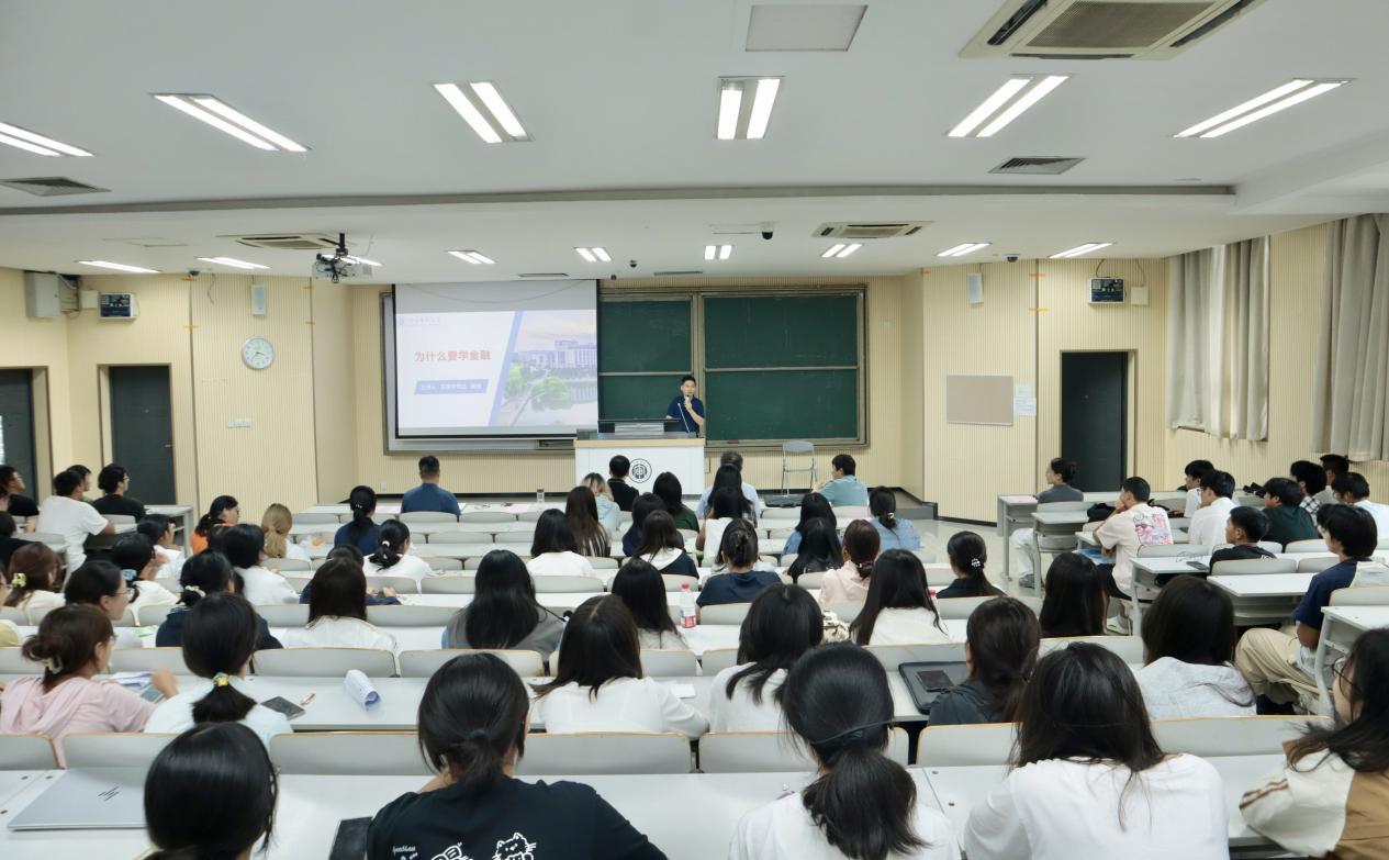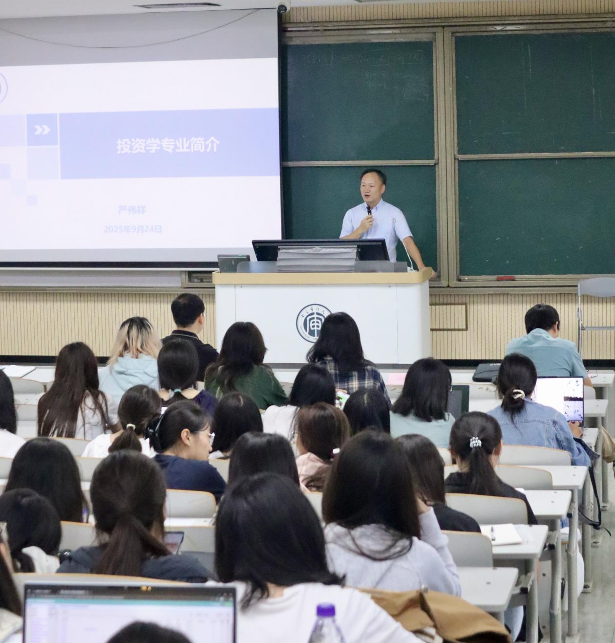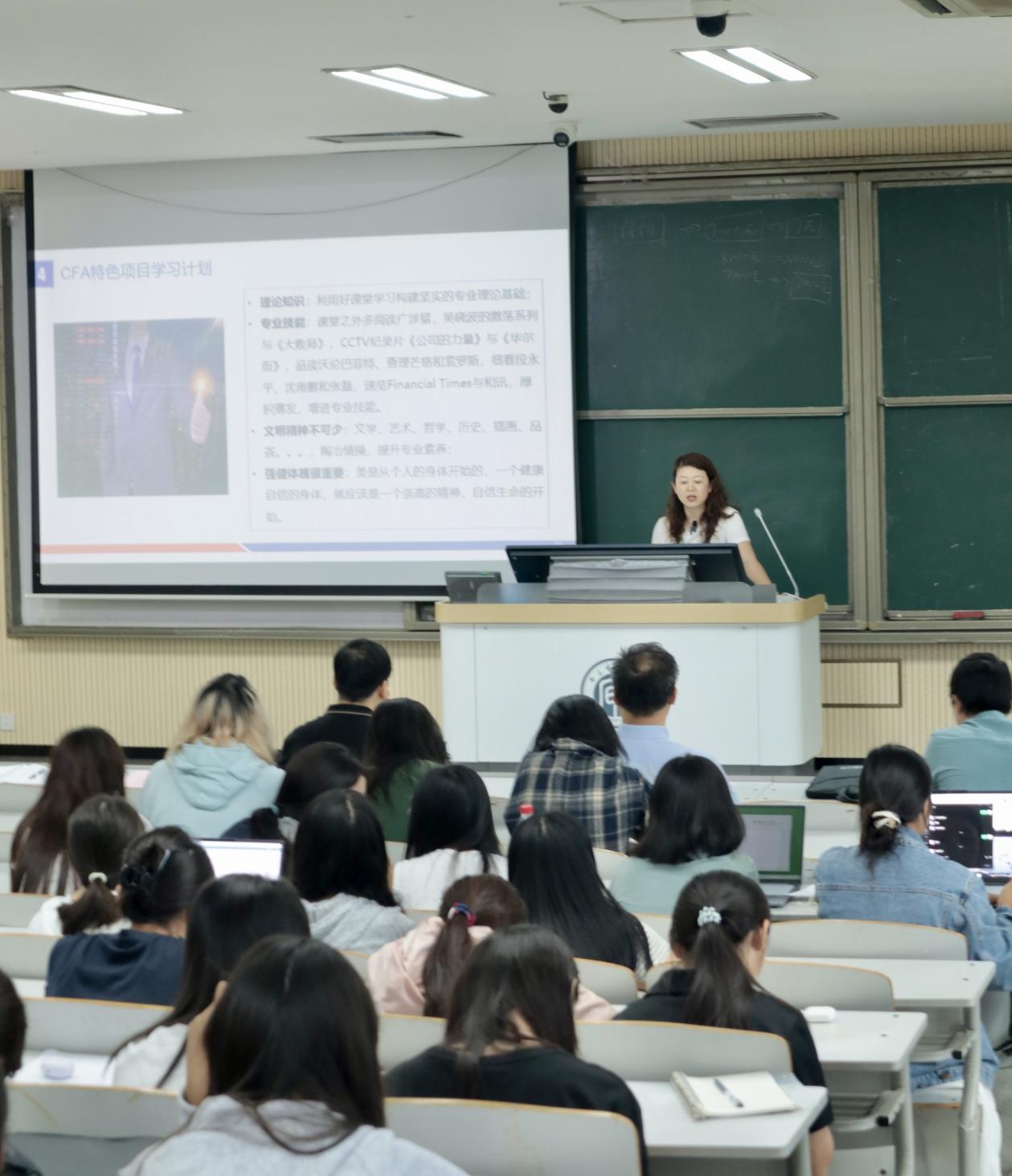 除了杰出校友的精彩讲座,学院还于当天下午在竞秀一报和竞秀二报同步举行了新生开学典礼暨专业教育介绍会。竞秀一报会场由直播色情 院长石岿然主持,孙清教授、金融审计系主任曹源芳分别为新生们详细介绍了金融学专业、金融审计专业的培养目标与课程体系。竞秀二报会场由直播色情 党委副书记单德伟主持,投资学系主任严伟祥、信用管理系主任肖振宇及金融工程系主任郭风龙分别就各自专业的特色、优势及未来发展前景做了深入浅出的讲解。CFA项目负责人金素向同学们介绍了项目的具体情况。青年教师代表胡熠、胡玥结合自身经历分享了宝贵的学习与成长经验。活动中,直播色情 党委书记王家华与院长石岿然寄语新生,希望大家尽快适应大学生活,充分利用学校和学院提供的优质资源,打下扎实的理论基础;保持好奇心和求知欲,培养批判性思维和创新能力,在未来的学习和实践中,勇于探索、敢于争先,成长为具备国际视野和本土情怀的复合型金融人才。两场专业教育活动帮助新生们明晰了未来的学习方向,为他们的大学生涯规划打下了坚实基础。