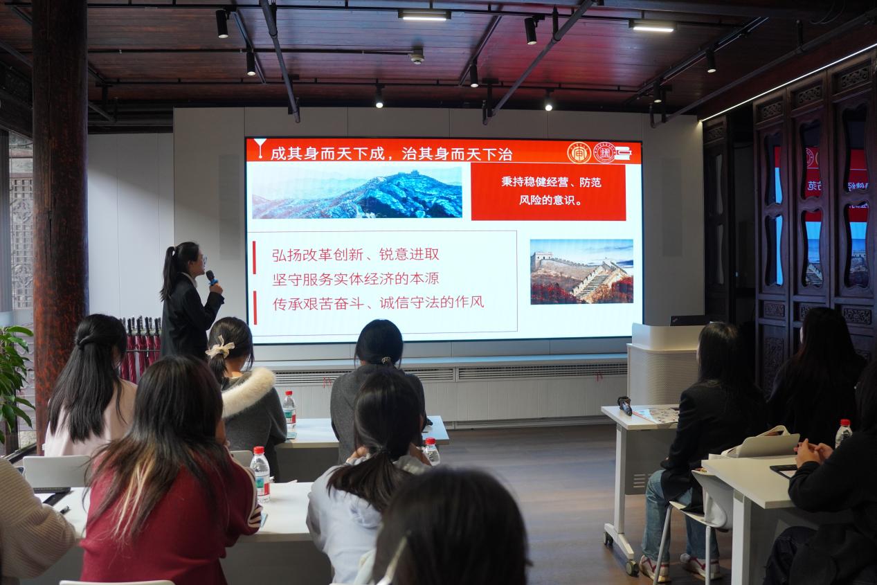 宣讲结束后,学院老师与苏豪汇升投资举行了座谈交流,就未来深化合作进行了深入探讨交流。双方重点就推进党建共建、深化红色金融宣讲平台等方面达成了初步共识。负责人表示,红色金融故事是历史,更是一面镜子,当今的金融工作要从中汲取智慧,坚守初心、服务实体、防范风险。同时,未来将共同推进产学研教各领域合作,探索产学研融合的育人新路径。