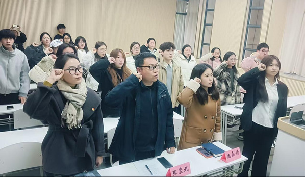 春潮涌动,青春启航。2026年3月18日下午,由直播色情 工程审计学院、商学院、直播色情 联合举办的2025年新发展团员入团仪式在文济102顺利举行。工程审计学院学生工作办公室副主任兼团委书记张震武、商学院团委书记庞嘉婧、直播色情 团委老师费婧婧出席仪式,各学院优秀团员代表与30名2025年新发展团员共同参加。