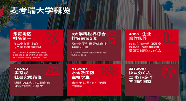 麦考瑞大学是世界名校,其商科其商科类专业位列全球前100,麦考瑞大学商学院已通过AACSB、EQUIS和AMBA三大国际顶级认证。进入该项目学习的同学,可通过此官方渠道升学,大大降低了个人申请的不确定性;同时缩短海外学习的适应周期,从而显著提高硕士阶段的学习成效;本项目还将“本+硕”学历学位的总时长缩短至4年,这意味着学生可提前进入职场或博士升学,积累工作经验,抢占职业发展的先机,在就业市场中建立更强的竞争力。