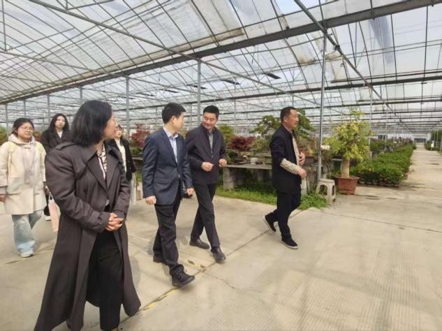 上午,学院师生一行首先来到江苏新艺园林工程有限公司。在企业负责人陪同下,团队实地参观了花木种植基地与经营场地,深入了解花木产业运营流程及矩阵直播、乡村课堂等创新业务模式。交流中,团队重点询问了企业作为首笔“VEP花木贷”主体的实践体验与贷后反馈,为后续项目优化积累了第一手素材。